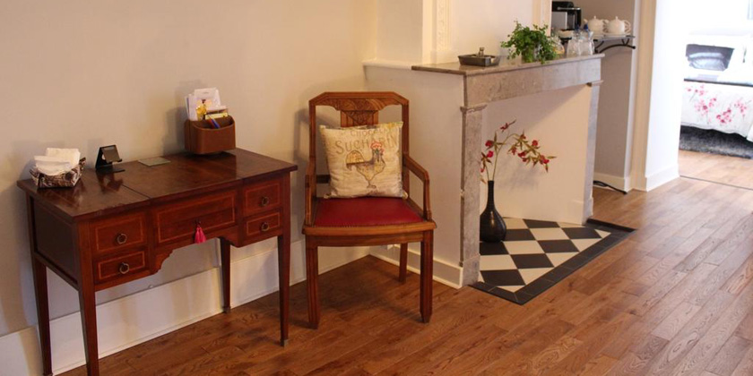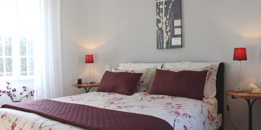 De cette chambre élégante et le salon communicant avec un canapé convertible, une vue panoramique permet d'admirer la zone de pâturage des chevaux et le parc. Par ailleurs son grand lit (160x200), son parquet en chêne, sa salle d'eau privée contribuent au bien-être des occupants et conviennent à une famille. La salle d'eau privative de cette chambre dispose d'une grande douche à l'italienne, un vasque sur un support en marbre et WC suspendu. Un ensemble de grande et petite serviettes et gant de toilette par personne est fourni, ainsi qu'un sèche-cheveux et des articles de toilette.